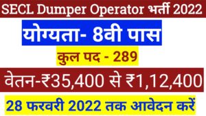 SECL Dumper Operator Recruitment 2022 , Apply Online for 289 Short Service Commission (IT) Officers Posts – welcome all of you to the educational website of the Govacancy.in. Today, I am going to give you all the information about SECL Dumper Operator Recruitment 2022 – Apply Online for 289 Posts 2022 |  bharti 2022. So if you want to get SECL Dumper Operator Recruitment 2022 – Apply Online for 289 Posts 2022 department government job on a good post in the year 2022, then this post today is going to be very important for all of you. In this post, I will give all of you complete information SECL Dumper Operator Recruitment 2022 – Apply Online for 289 Posts 2022 education qualification, salary, application fees and selection process. So you guys will read this post carefully and you will get all the links related SECL Dumper Operator Recruitment 2022 – Apply Online for 289 Posts 2022 official notification in the last of the post. If you like the SECL Dumper Operator Recruitment 2022 – Apply Online for 289 Posts 2022 Job opportunity, then definitely share it with your friends.