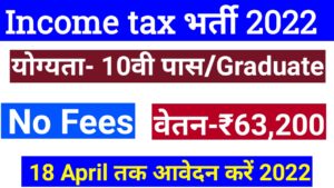 Income Tax Department Recruitment 2022 – welcome all of you to the educational website of the Govacancy.in. Today, I am going to give you all the information about Income Tax Department Recruitment 2022 – Apply offline for Posts 2022 |  bharti 2022. So if you want to get  Income Tax Department Recruitment 2022 – Apply offline for Posts 2022 department government job on a good post in the year 2022, then this post today is going to be very important for all of you. In this post, I will give all of you complete information Income Tax Department Recruitment 2022 – Apply offline for Posts 2022 education qualification, salary, application fees and selection process. So you guys will read this post carefully and you will get all the links related  Income Tax Department Recruitment 2022 – Apply offline for Posts 2022 official notification in the last of the post. If you like the Income Tax Department Recruitment 2022 – Apply offline for Posts 2022 Job opportunity, then definitely share it with your friends.