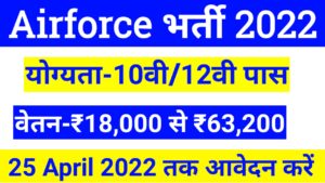 Indian Air Force Recruitment 2022 – welcome all of you to the educational website of the Govacancy.in. Today, I am going to give you all the information about Indian Air Force Recruitment 2022 – Apply Offlinefor Posts 2022 | bharti 2022. So if you want to get Indian Air Force Recruitment 2022 – Apply Offlinefor Posts 2022 department government job on a good post in the year 2022, then this post today is going to be very important for all of you. In this post, I will give all of you complete information Indian Air Force Recruitment 2022 – Apply Offlinefor Posts 2022 education qualification, salary, application fees and selection process. So you guys will read this post carefully and you will get all the links related Indian Air Force Recruitment 2022 – Apply Offlinefor Posts 2022 official notification in the last of the post. If you like the Indian Air Force Recruitment 2022 – Apply Offlinefor Posts 2022 Job opportunity, then definitely share it with your friends.