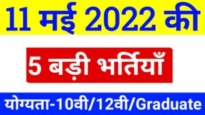 11 May 2022 Top 5 Government Jobs – Latest Govt job Today