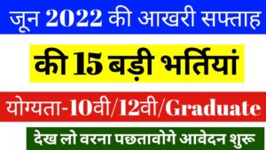 June 2022: 4th Week Top 15 Jobs Government Jobs – Latest Govt job Today