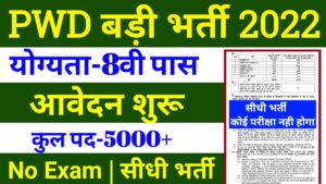 PWD Recruitment 2022 – Post- 5000, Online Apply, 8th, 10th,12th Apply