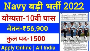 Note :– All information in this post about Indian Navy Recruitment 2022 (भारतीय नौसेना) – Apply Online for Posts 2022 is correct but if there is any error, we will not be responsible for it. To verify all the details about this Indian Navy Recruitment 2022 (भारतीय नौसेना) – Apply Online for Posts 2022 Online apply Form 2022, please visit only the official website of related to this notification and read carefully that it is strategic, given above the name of the important link
