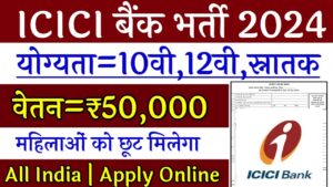 2024 ICICI Bank की तरफ से  बंपर भर्ती निकल कर आ गई है योग्यता  10वी  पास रखा गया भारत के सभी लोग इसके लिए आवेदन कर सकते हैं महिला और पुरुष तो दोनों लोगों के लिए बहुत ही बड़ा मौका निकाल कर आ गया है कैसे आवेदन करना है इसके साथ आपको इसमें वेतन कितना मिलेगा और इसमें आपकी आयु सीमा क्या है इसके साथ ही योग्यता कक्षा 10वी पास है तो इसका फॉर्म जरूर भरे इच्छुक उम्मीदवार पूरा नोटिफिकेशन फॉर्म भरने से पहले पढ़ ले तो कैसे फॉर्म भरना उसकी पूरी जानकारी आपको यहां पर मिलने वाली है आपको बता दे की ICICI Bank में अगर आप नौकरी करना चाहते हैं तो आपके लिए बहुत ही बड़ा मौका निकाल कर आ चुका है 2024 में सरकारी नौकरी करना चाहने वालों के लिए बहुत ही बड़ा मौका है भारत के सभी राज्यों के लिए भर्ती निकल कर आ गई है आपके राज्य में ही आपकी पोस्टिंग हो सकती है