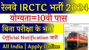 2024 Railway IRCTC की तरफ से  बंपर भर्ती निकल कर आ गई है  सभी लोग इसके लिए आवेदन कर सकते हैं महिला और पुरुष तो दोनों लोगों के लिए बहुत ही बड़ा मौका निकाल कर आ गया है कैसे आवेदन करना है इसके साथ आपको इसमें वेतन कितना मिलेगा और इसमें आपकी आयु सीमा क्या है इसके साथ ही योग्यता कक्षा 10वी पास है तो इसका फॉर्म जरूर भरे इच्छुक उम्मीदवार पूरा नोटिफिकेशन फॉर्म भरने से पहले पढ़ ले तो कैसे फॉर्म भरना उसकी पूरी जानकारी आपको यहां पर मिलने वाली है आपको बता दे की Railway IRCTC में अगर आप नौकरी करना चाहते हैं तो आपके लिए बहुत ही बड़ा मौका निकाल कर आ चुका है 2024 में सरकारी नौकरी करना चाहने वालों के लिए बहुत ही बड़ा मौका है भारत के सभी राज्यों के लिए भर्ती निकल कर आ गई है आपके राज्य में ही आपकी पोस्टिंग हो सकती है