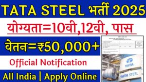 Note :– All information in this post about TATA Steel कंपनी Recruitment 2025 – Apply Online for Posts 2025 is correct but if there is any error, we will not be responsible for it. To verify all the details about this TATA Steel कंपनी Recruitment 2025 – Apply Online for Posts 2025 Online apply Form 2025, please visit only the official website of related to this notification and read carefully that it is strategic, given above the name of the important link